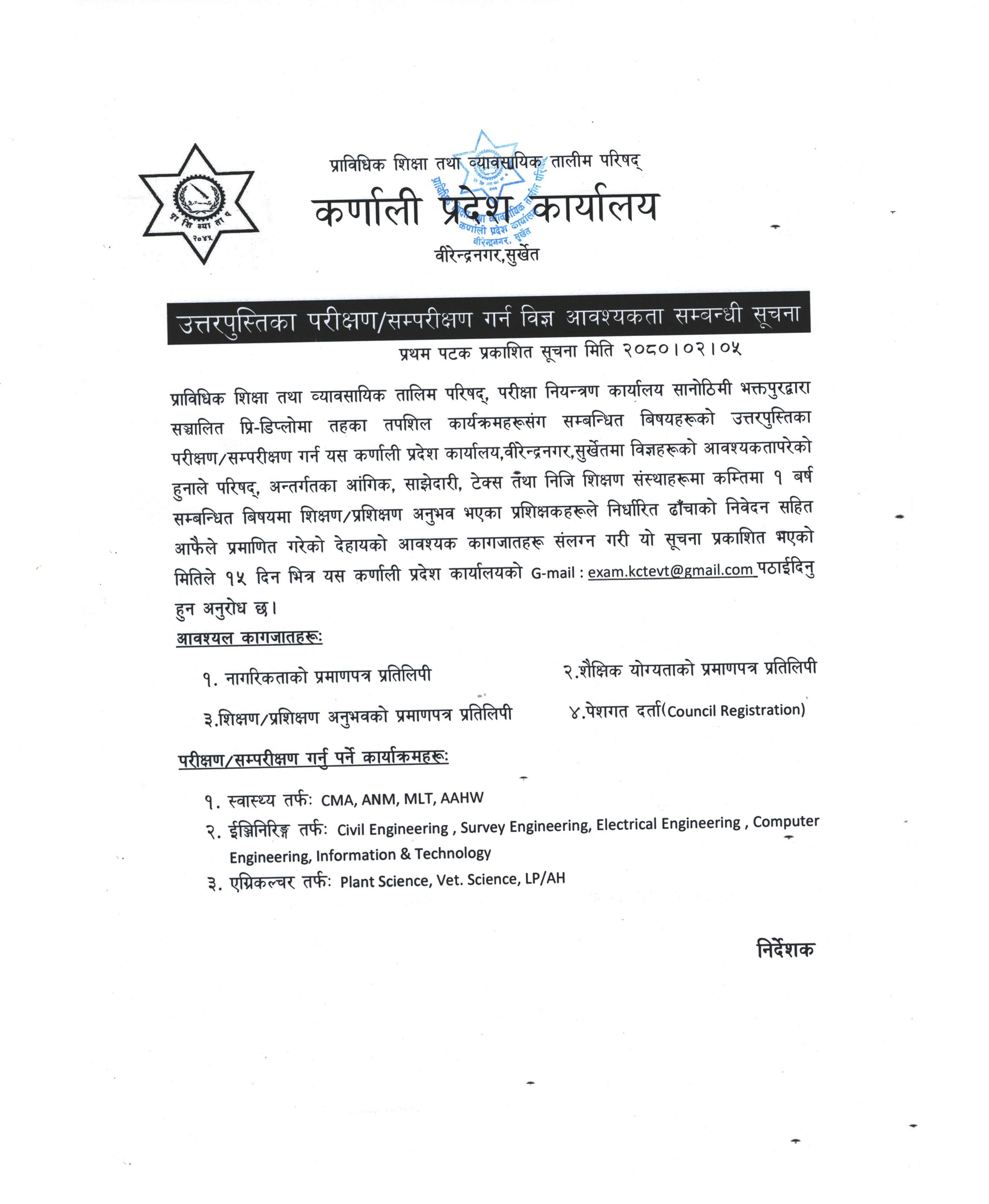 उत्तरपुस्तिका परीक्षण/सम्परीक्षण गर्न विज्ञ आवश्यकता सम्बन्धी सूचना