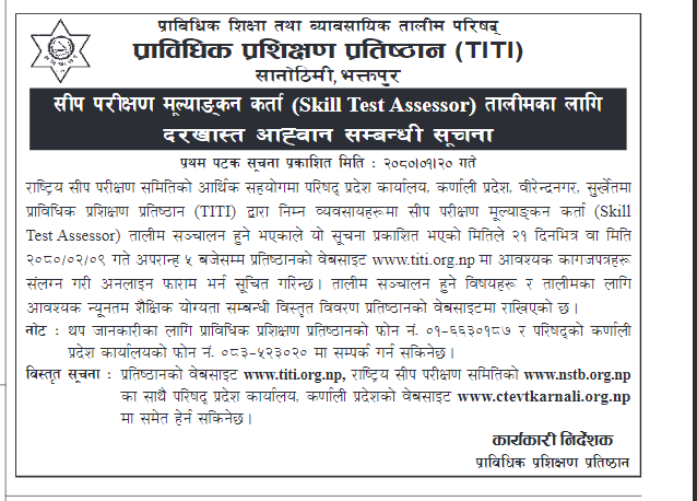 सीप परीक्षणको आवेदन आह्ववान सम्बन्धी सूचना (पुन: प्रकाशन)२०८१-१०-२१